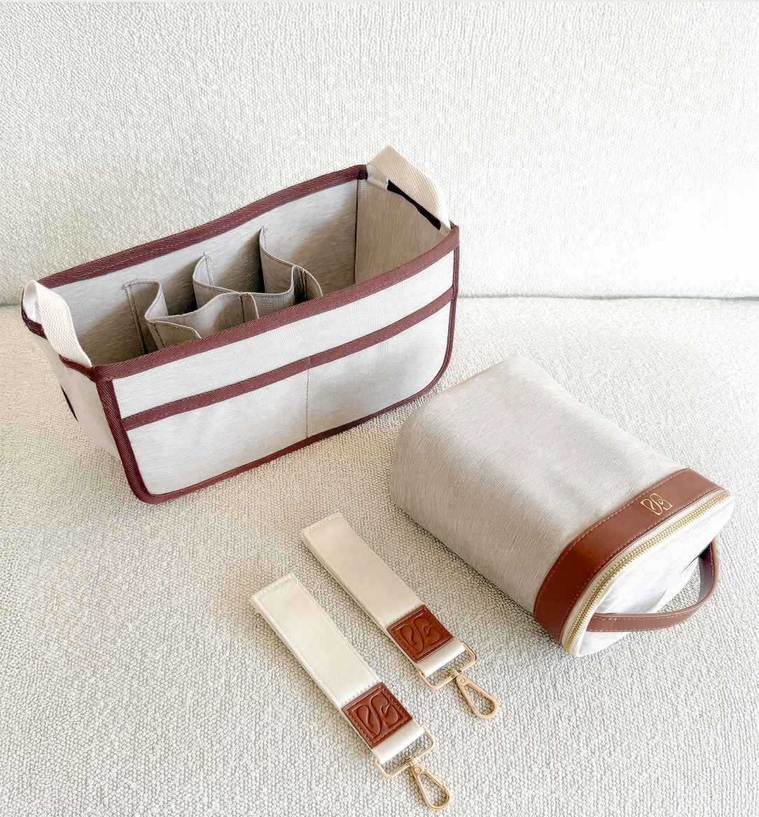Stay organized with a built-in divider, keep snacks cool in the sleek pouch, and clip it to your stroller in seconds. Designed with a minimal style and recycled cotton, it’s the tote that works far beyond the baby years.