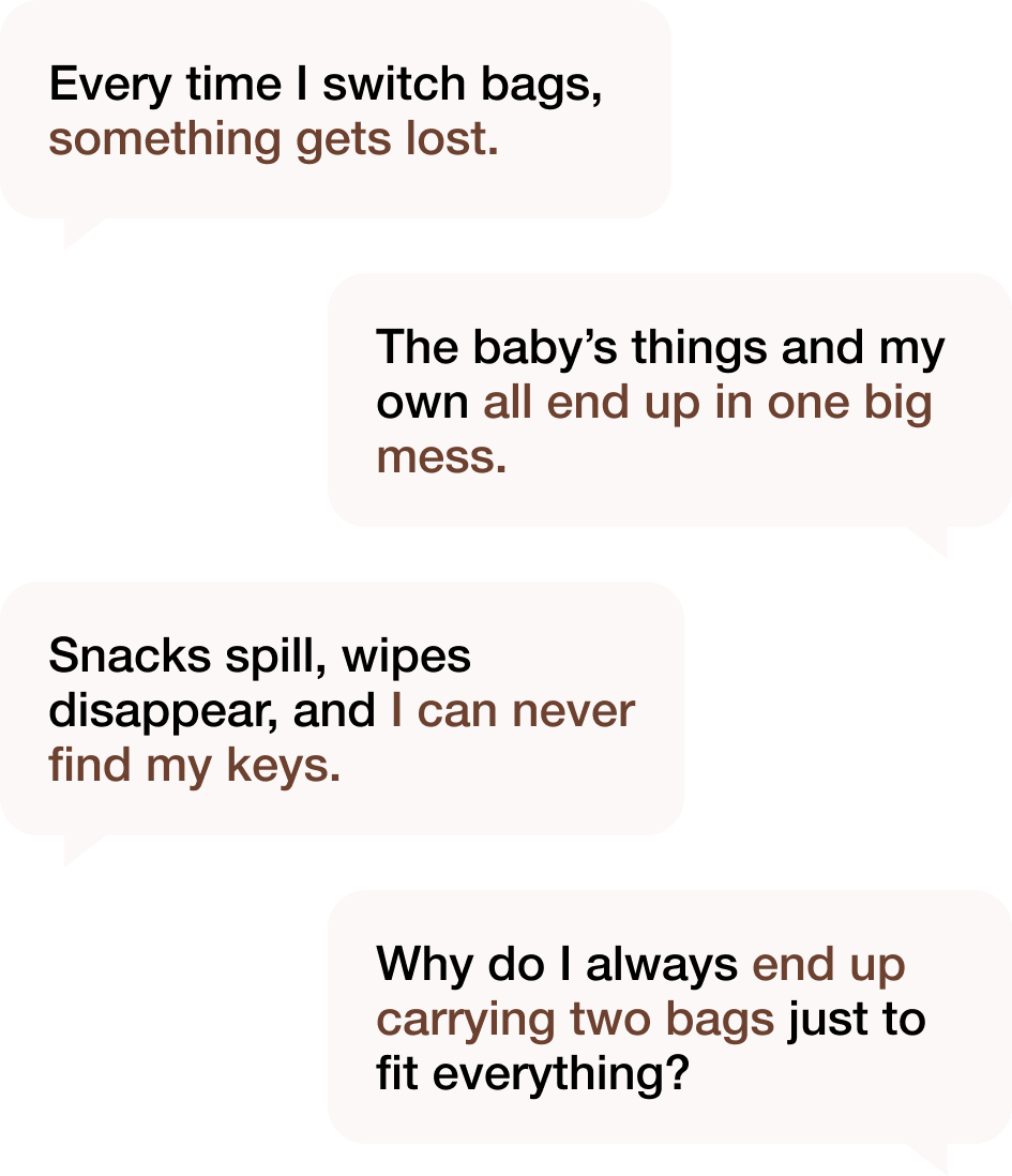 Between bottles, toys, diapers, snacks, and your essentials, it’s easy for your bag to turn into chaos.